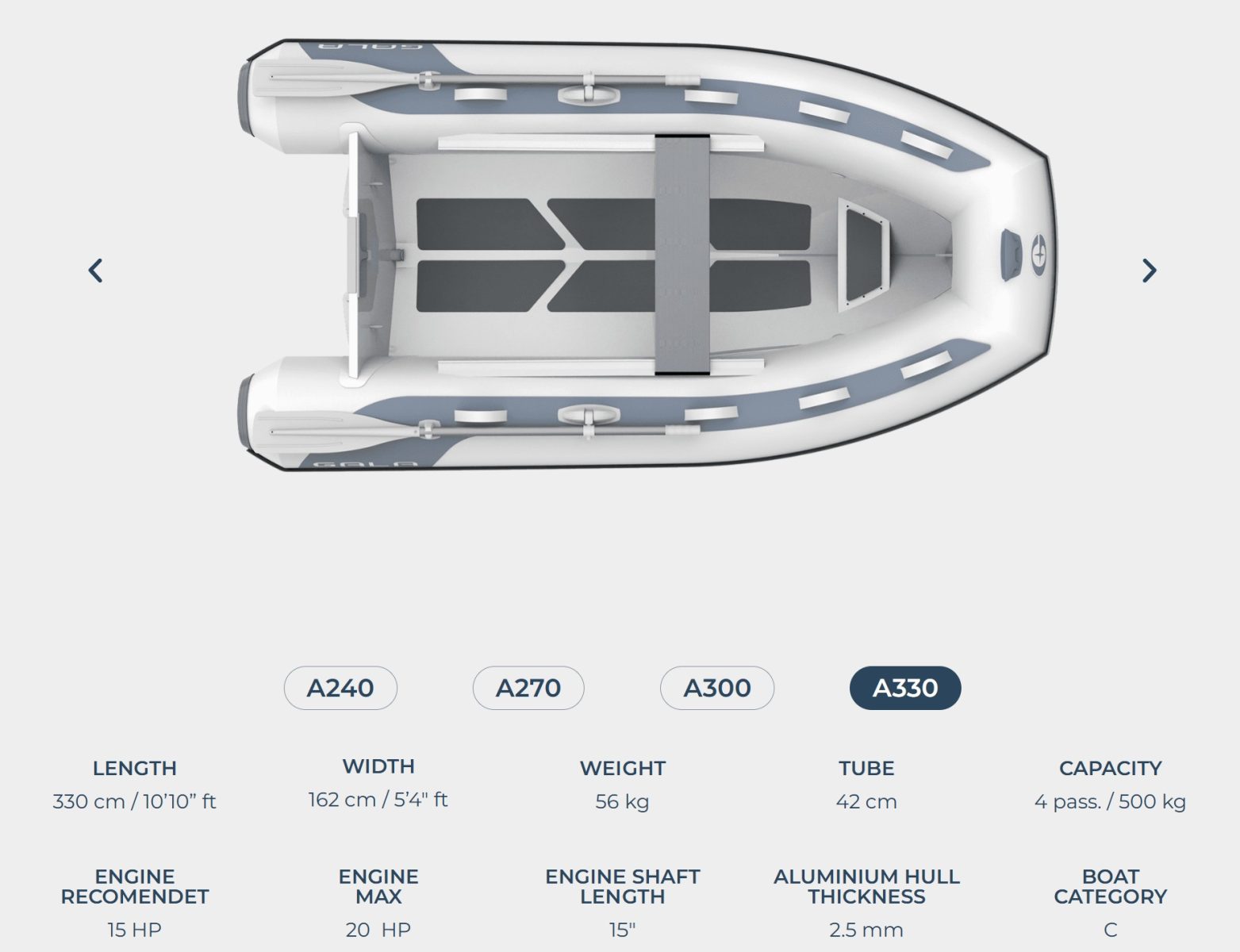La gamme se décline en quatre modèles — 300, 330, 360 et 390 — afin de s’adapter à différents usages et besoins, que ce soit pour une utilisation en annexe ou pour des sorties en mer plus polyvalentes.